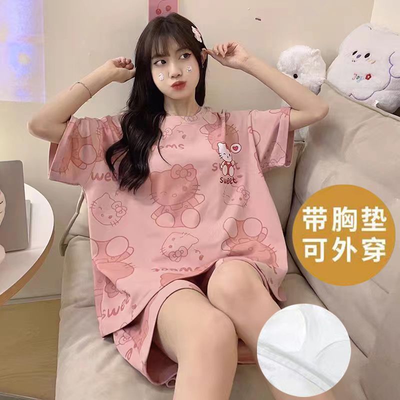 女性用胸パッド付きパジャマ、2025年夏新作、純綿ワンピーススーツ、初夏レディースホームウェア、女性用夏服