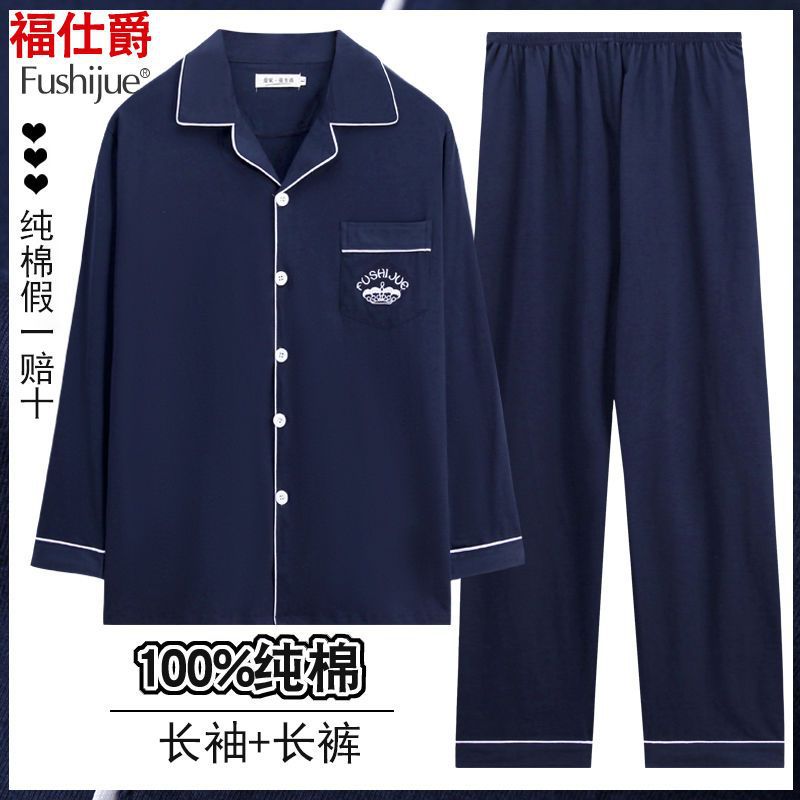 男性用パジャマ、純綿、秋、長袖、ティーンエイジャー、中高年、綿、メンズ、春夏ホームウェア、シンプルでカジュアル