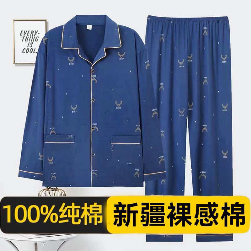 純綿メンズパジャマ春と秋の新作長袖ズボンツーピースセットレギュラールーズ大きいサイズホーム服
