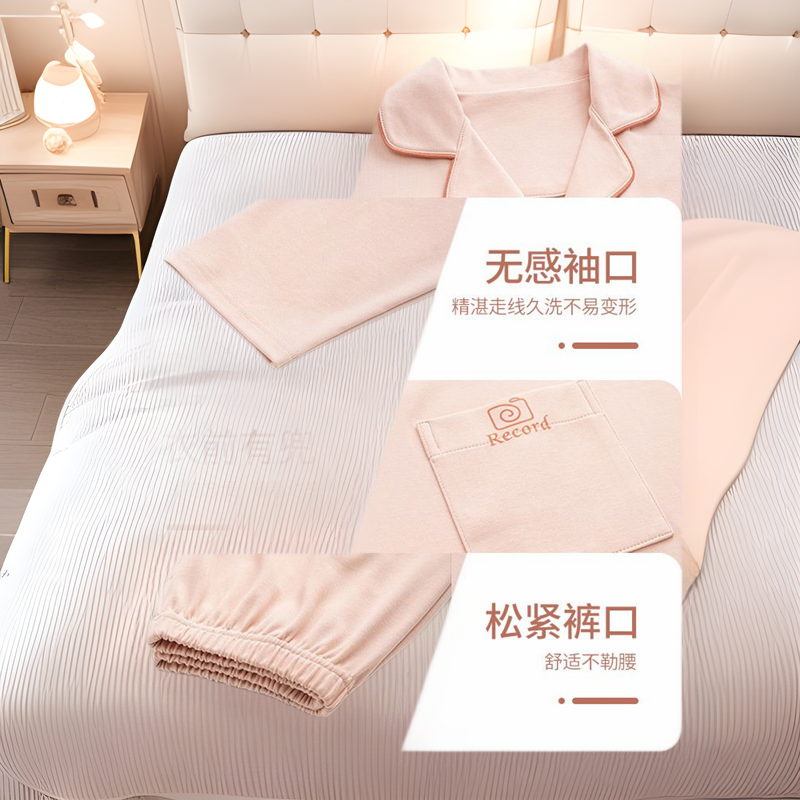 純綿2025年新作女性用パジャマ、春秋長袖ホームウェア、秋冬薄手セット