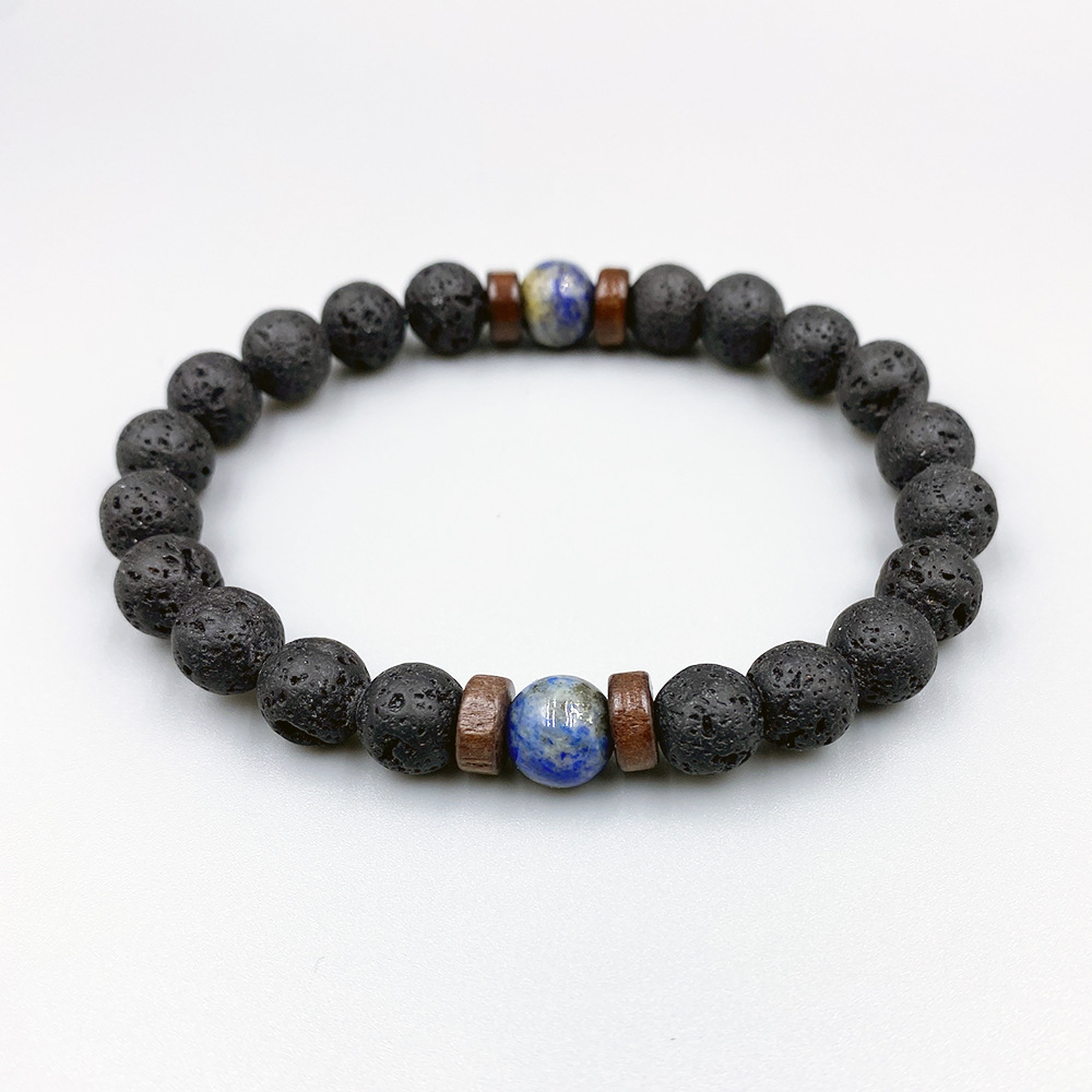 速売通爆金閃霊石火山石木珠天然青金石手串カップル手環個性ブレスレット卸売り
