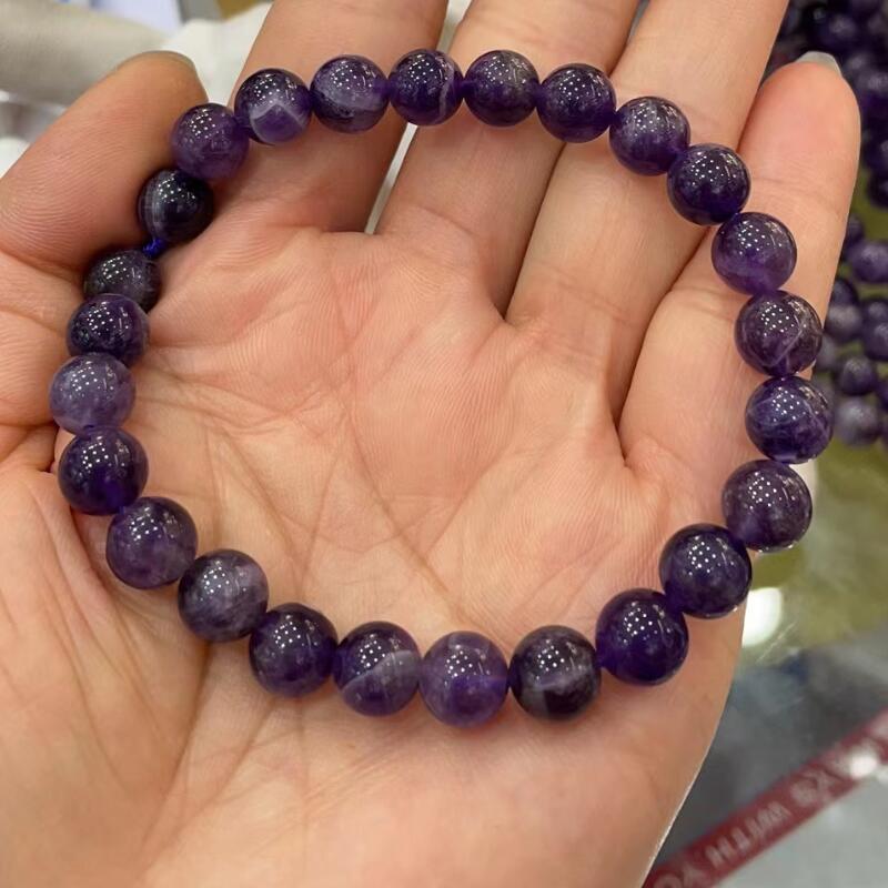 アマゾンTEMU紫晶虎眼弾力ブレスレットバラ石瑪瑙混彩珠玉手串WISH