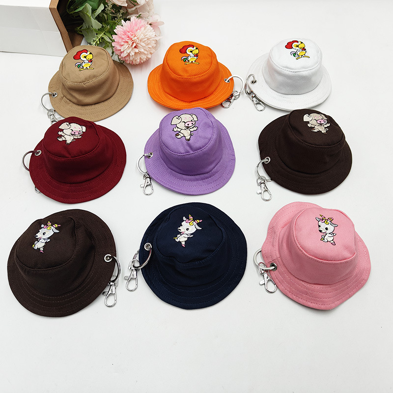 クロスボーダーDIYキーホルダージッパーバッグ両面漁師帽刺繍十二生肖動物模様ミニ帽子