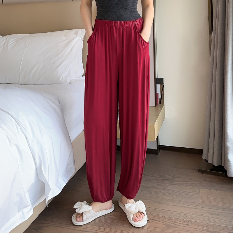 女性の大きいサイズカジュアルパンツ春と夏の無地ホームパンツ弾性ズボン弾性パジャマパンツルーズモーダルパンツ
