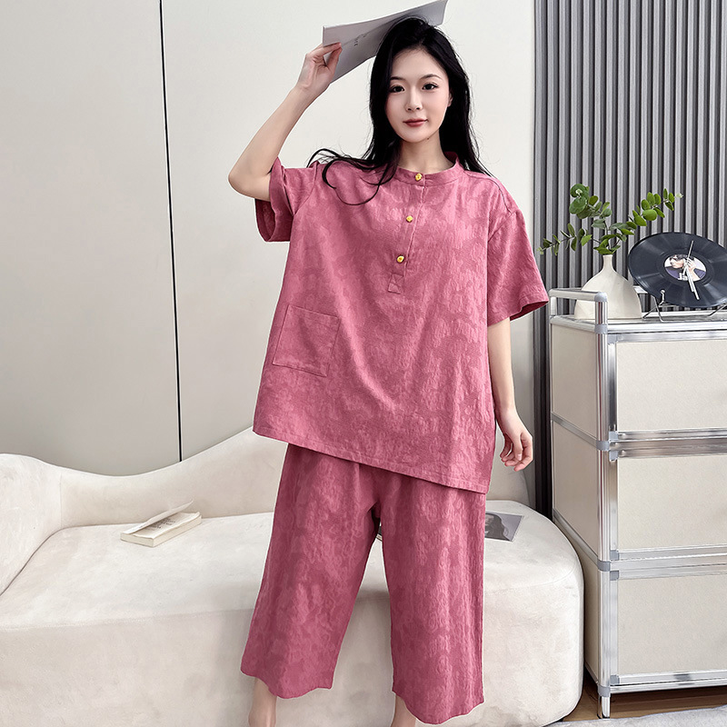 夏大きいサイズの純綿ジャカードパジャマ薄い半袖クロップドパンツ 2025 新しいスタイルはスーツの外で着用できますドロップシッピング