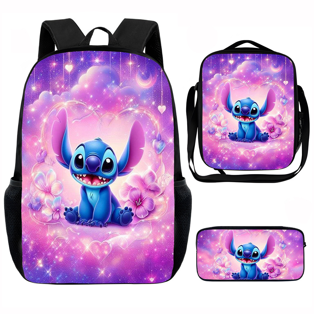 ステッチランドセル、ランチバッグ、ペンケース、小学生リュック、漫画周辺リュック、子供用バッグ3点セット