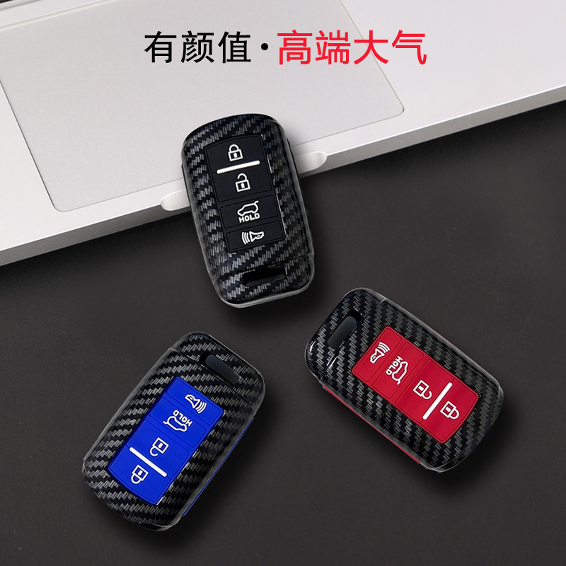 起亜 K9 キーカバースマート 4 キーカーボンファイバーパターンシリコーンキーシェルバックルバッグクロスボーダー