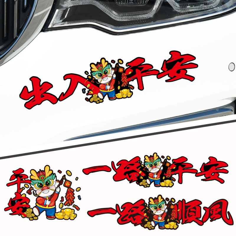 2024龍年は平安車に出て、道中の平安シール車に個性的なアイデアを飾って、お祝いの車に貼り付けます。