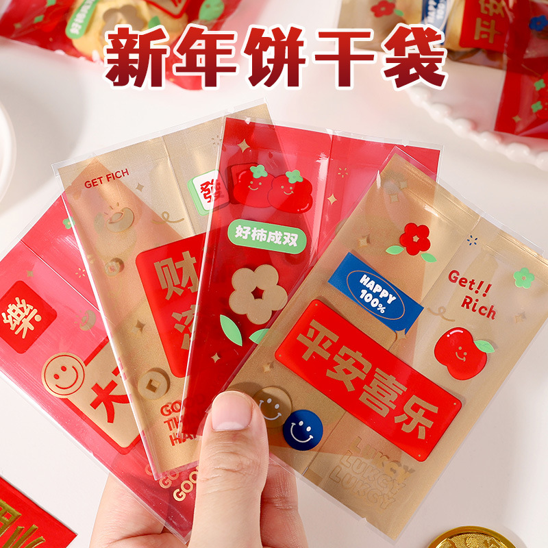 2025新年のお祝いの単独ビスケット包装袋は手作りのクランベリーのボタンを密封します。