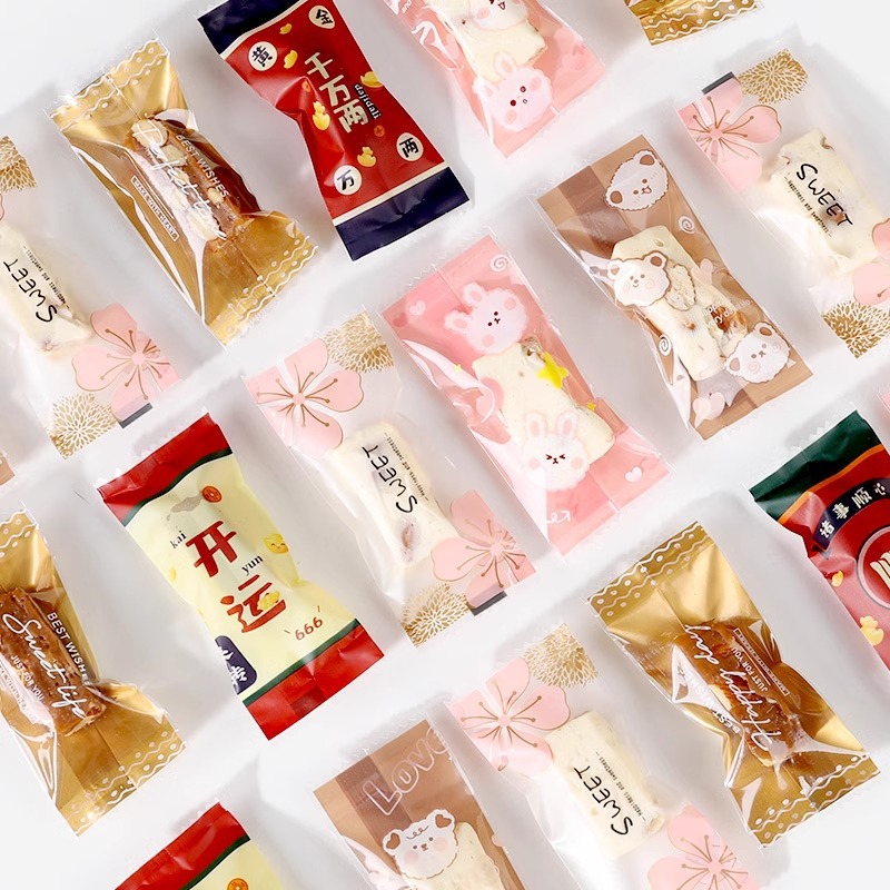 太妃糖牛圧延糖包装袋機封海塩雪花ショートスリーブクッキー透明小単独子