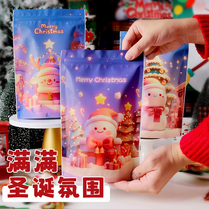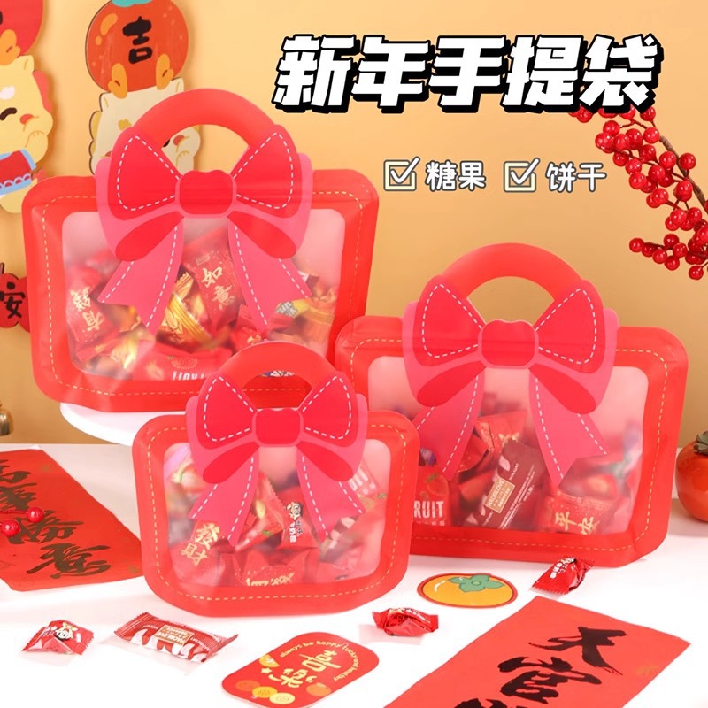 2025年新年プレゼントリボン包装袋手提げ袋プレゼントキャンディー自封クッキー雪花ショートニングお菓子