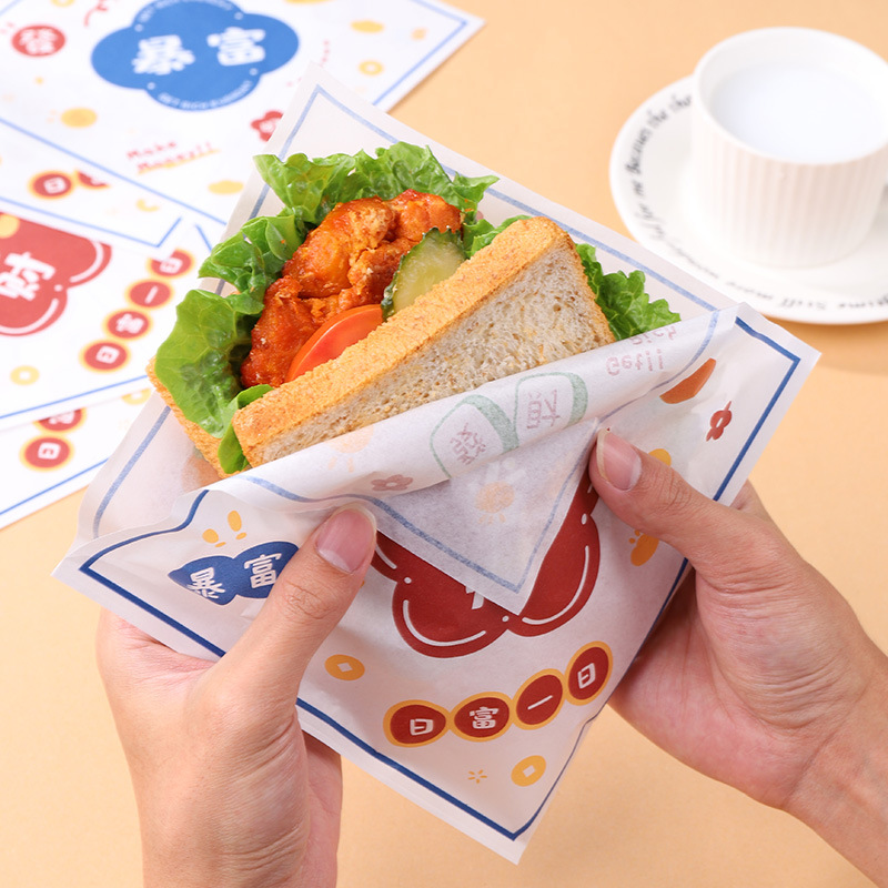 暴富金持ちサンドイッチ包装紙専用折り畳み食品級マイクロ波商用家庭用ハンバーガーおにぎり