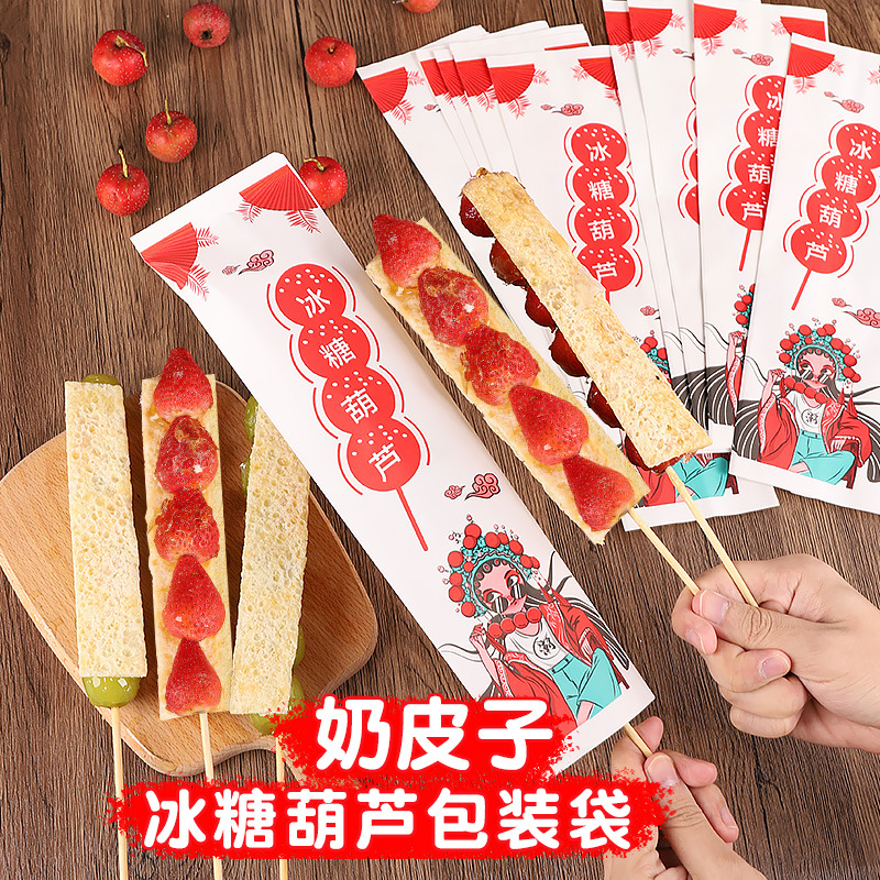 古い北京のアイスキャンディーのヒョウタンの包装袋の紙袋の専用の粘着しない膜の防油の食品級の露店の商用の使い捨て