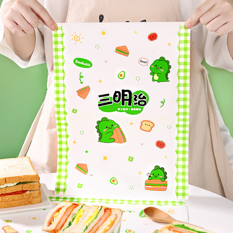小恐竜サンドイッチ包装紙食品級牛皮出店業務用ハンバーグおにぎりプラスチックサンドイッチ防霧袋