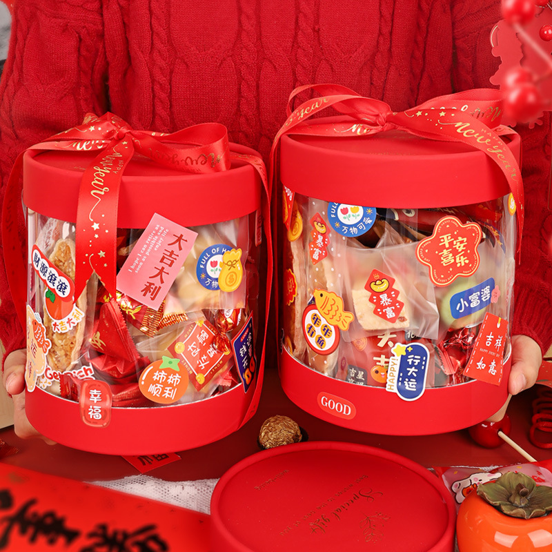 2023新年抱っこバケツギフトボックスビスケットキャンディースナックボックス透明包装ボックスベーキング手提げギフトボックス
