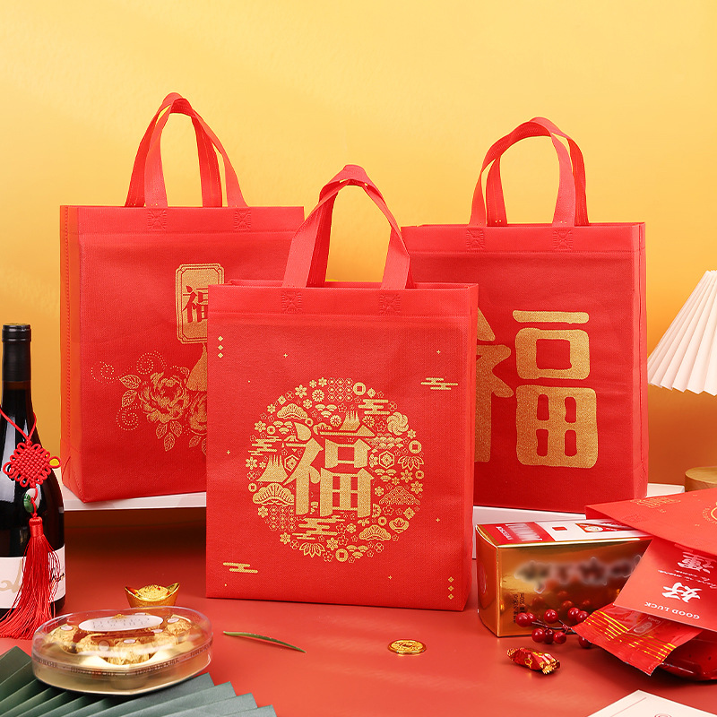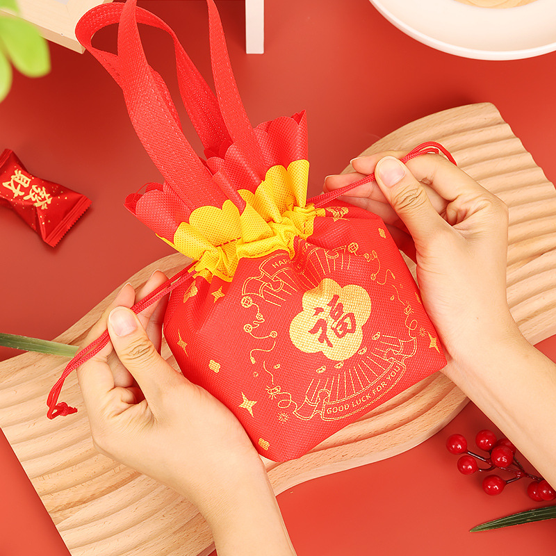 2024年新年春節巾着袋福袋お祝いギフト包装ハンドバッグ不織布箔押し・熱転写彩