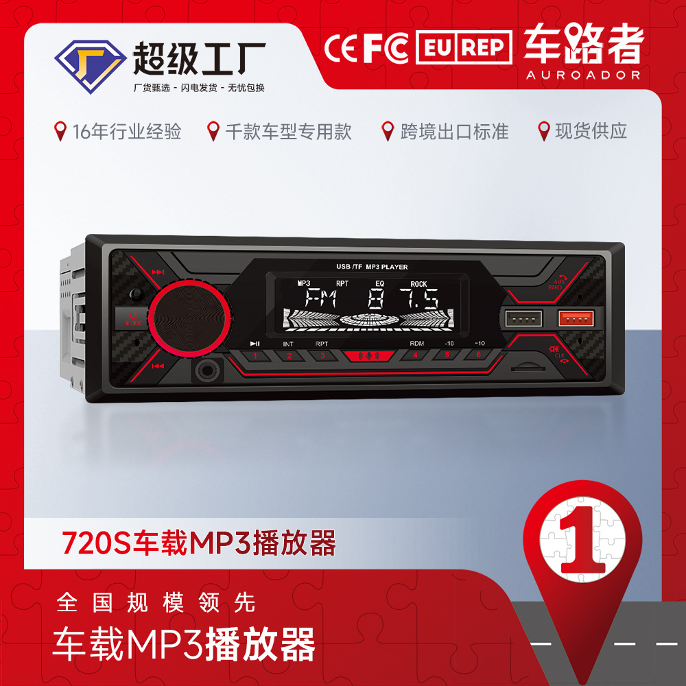 国境を越えた新型タッチ式赤色ライトラジオヘッドユニット車載BluetoothハンズフリーMP3ロングタイプ720Sロスレス音楽