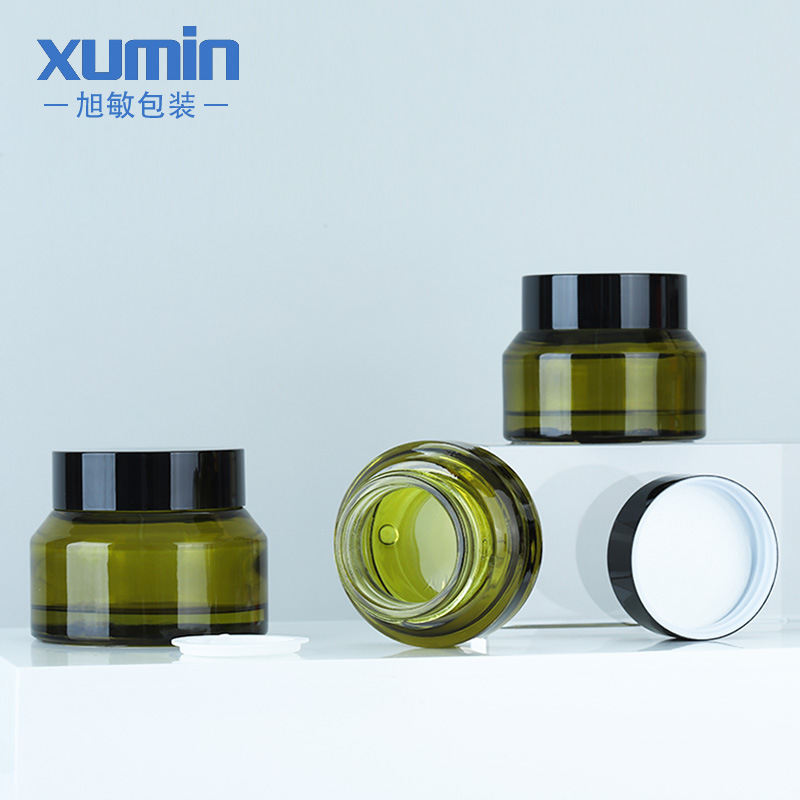 旭敏包装化粧品缶15g 30g 50gグリーンガラスクリーム瓶アイクリームガラス瓶現物