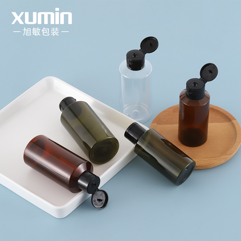 50-250ml petクリアラウンドショルダーキャップボトルブラックフラットトップ蝶フリップキャップスキンケアボトル化粧品ボトル