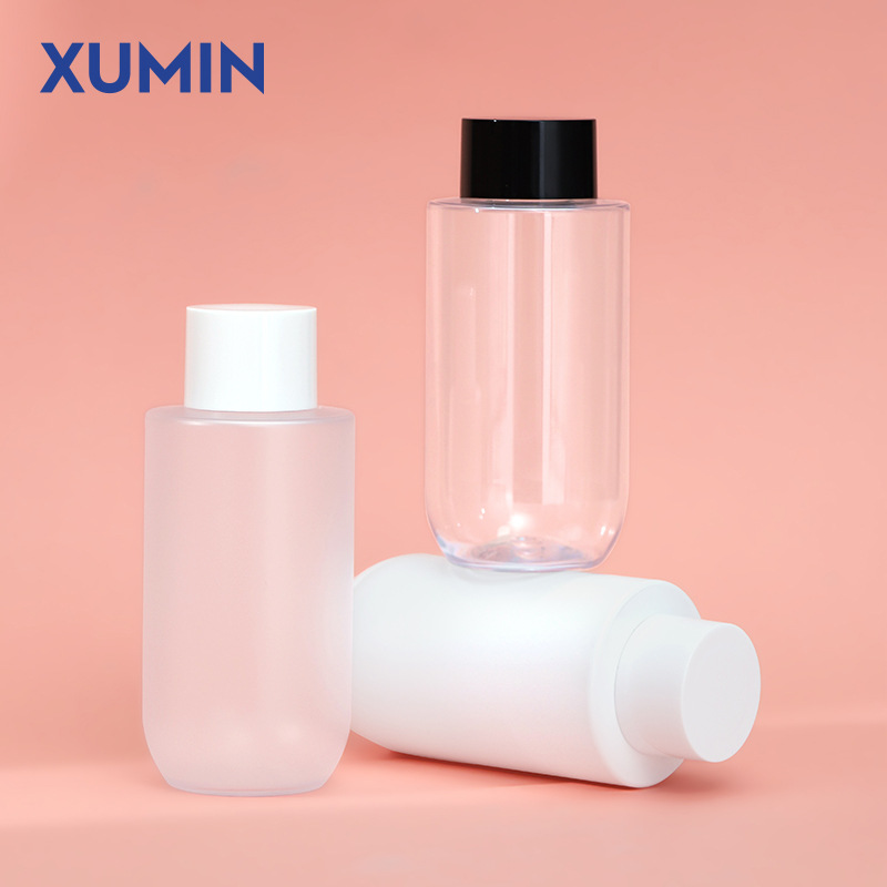 Xumin スポット 200 ミリリットル白フラットショルダーペットキャップボトル透明丸底ハイドロゾルボトルつや消しエッセンスボトル詰め替えボトル