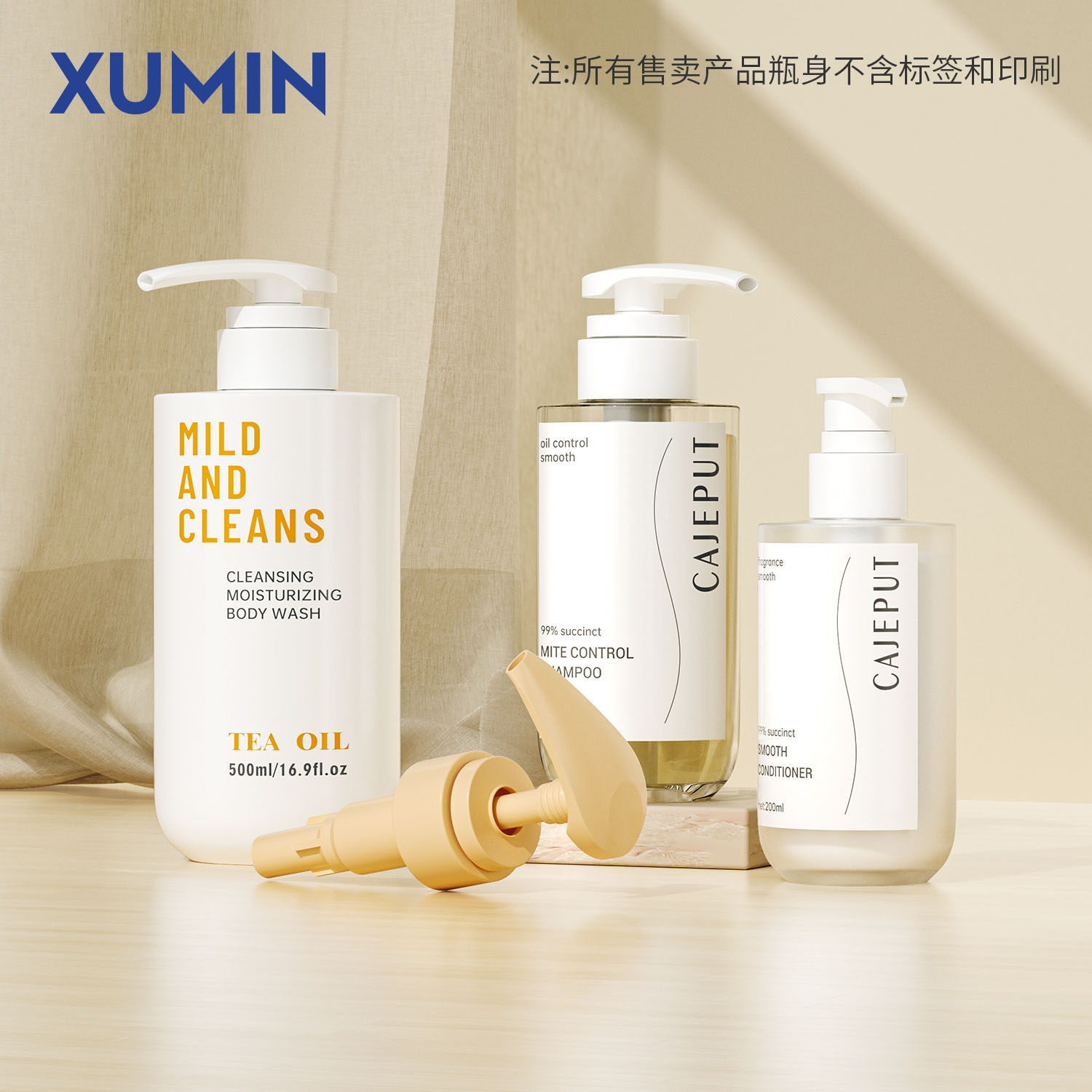 Xumin カスタマイズされた 200MLpet シャンプーボトルプレスシャワージェルボトル 300ml-500ml ラウンドショルダーローションボトル