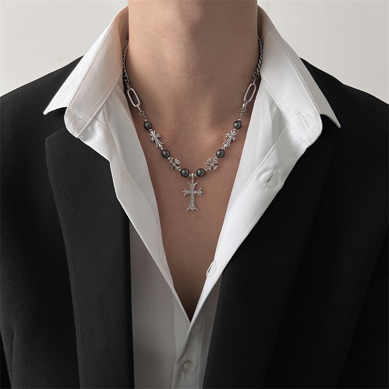 欧米のレトロなビーズはクロスのネックレスをつなぎます。