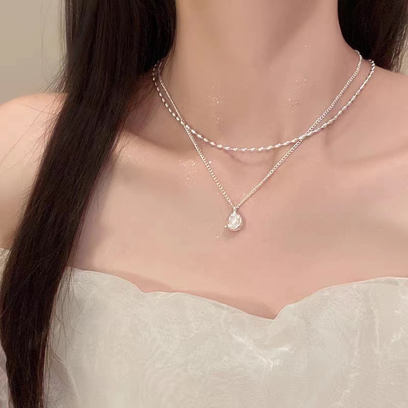 女性用フレンチシンプル不規則パールネックレス、軽い高級感とハイエンドのニッチデザイン、二層重ね鎖骨チェーンネックレス