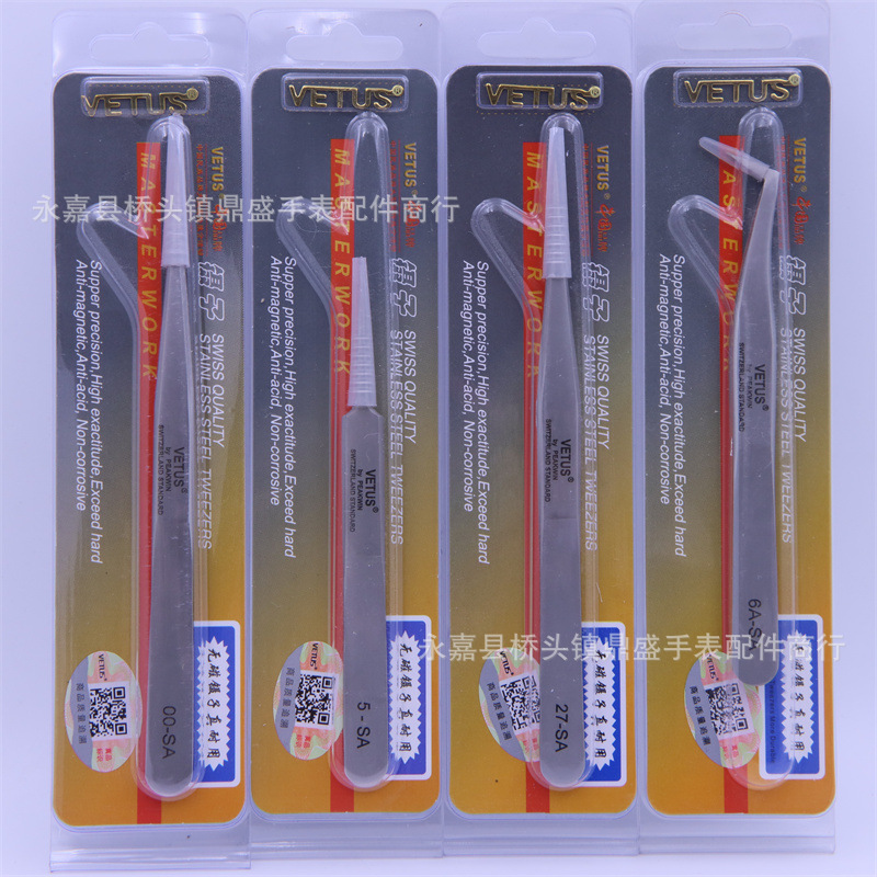 時計工具 VETUS 高精度ピンセット SAシリーズ 先のとがったピンセット バネピンセット 曲先ピンセット パーツクランプピンセット