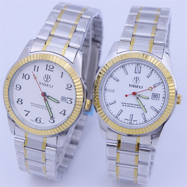 意利全鋼腕時計中高年男女デジタル面防水時計原装2035ムーブメント石英時計ダブルカレンダー