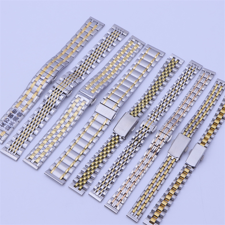 ステンレス腕時計鋼バンド蝶ダブルボタン折り畳みバックル中実鋼帯男女共通時計チェーン12-22mm