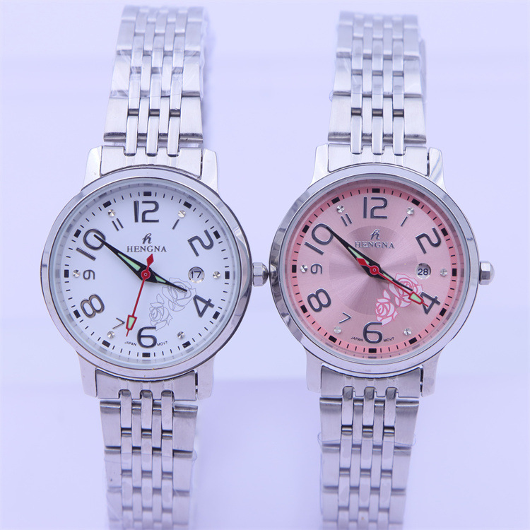 全鋼亨納石英時計レディースファッションカラーデジタル面防水腕時計オリジナルVJ22ムーブメント腕時計現物