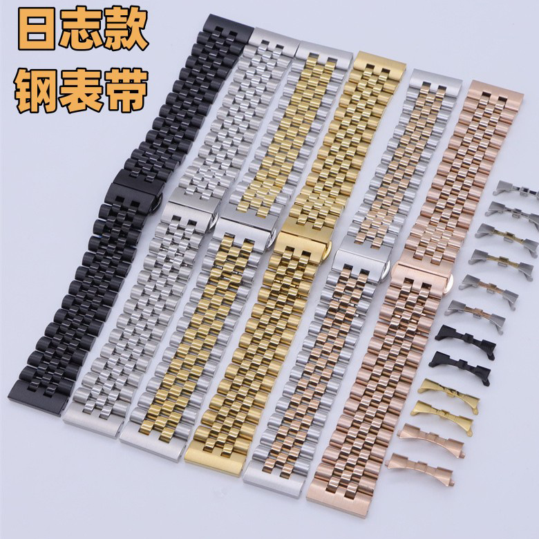 ステンレス鋼中実15珠鋼バンド十五珠双保険ボタン平口鋼バンド腕時計部品男性時計チェーン
