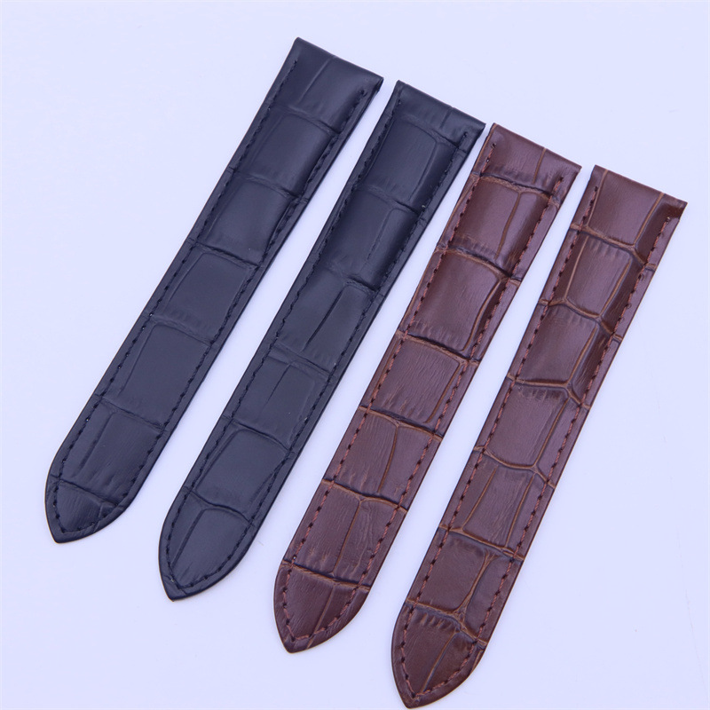 男女兼用牛革時計ストラップ代替タンク/サントス/ロンドンシリーズレザーストラップフラットヘッドダブルテールベルト