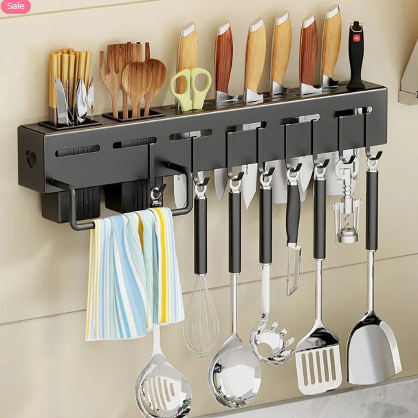 炭素鋼ナイフホルダー壁掛け箸立て多機能収納棚ウォール ‐ マウンテンキッチンオーガナイザー