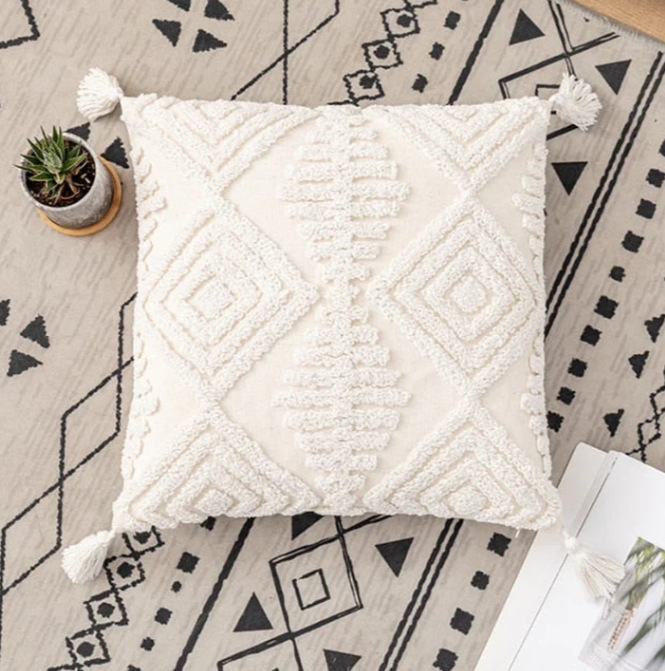 アイオリーニュートラルコットンQuilted Cushion Cover洗える角型抱き枕カバー