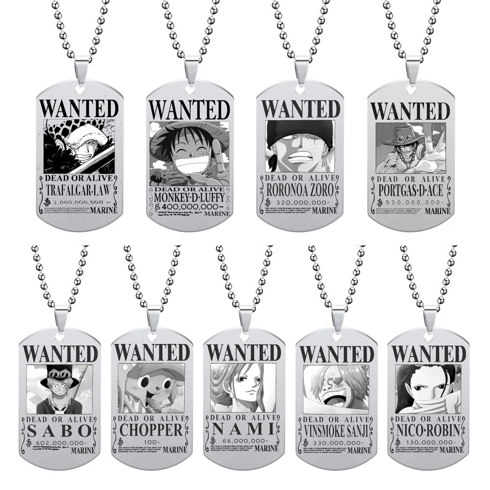 アニメの周辺のワンピースのネックレスのルフィの索隆のエースの懸賞は手配してチタンの鋼の軍のブランドの漫画の明るい顔のペンダントを手配します。