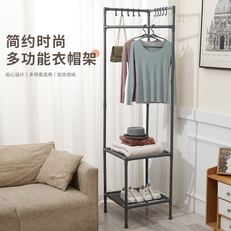 簡易服ラック多機能ハンガー床ハンガー家庭用収納服ラック靴の帽子一体棚