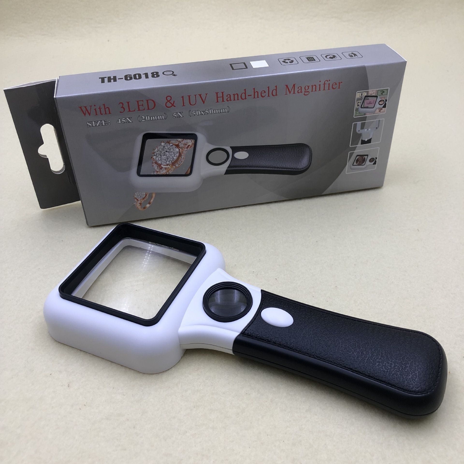 新しい手持ち式LEDなどのランプ付きuvランプ角型ランプ付きルーペ老人プレゼント学生ルーペ