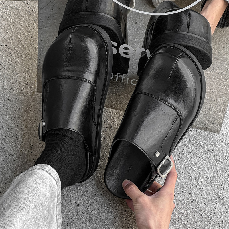 黒の厚底スーパーホットハーフスリッパ男性と女性のための 2025 秋の新しいアウターウェアフレンチソフトソールつま先キャップ 60521-J
