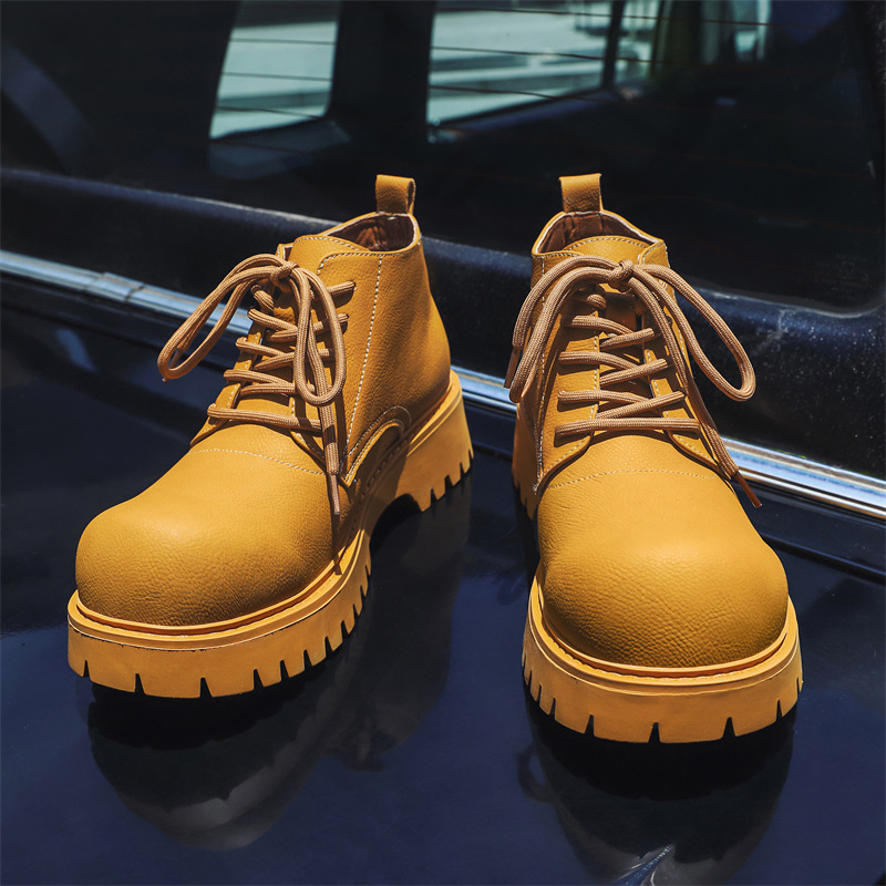 2024秋の新型男女カップルのマーティンブーツ英倫風機関車工装厚い底大黄ブーツ66621-P