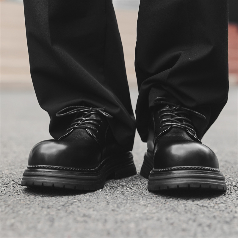 小衆破壊風徳比靴男2024秋の新ファッション個性厚い底の大きい頭の馬丁靴77067-J