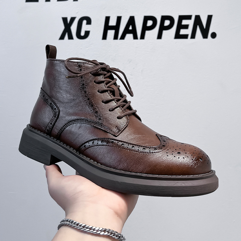 布ロック男雕花英倫中帮男靴格好いい高级感マーティン靴ビジネススタイリストブーツ8183-A