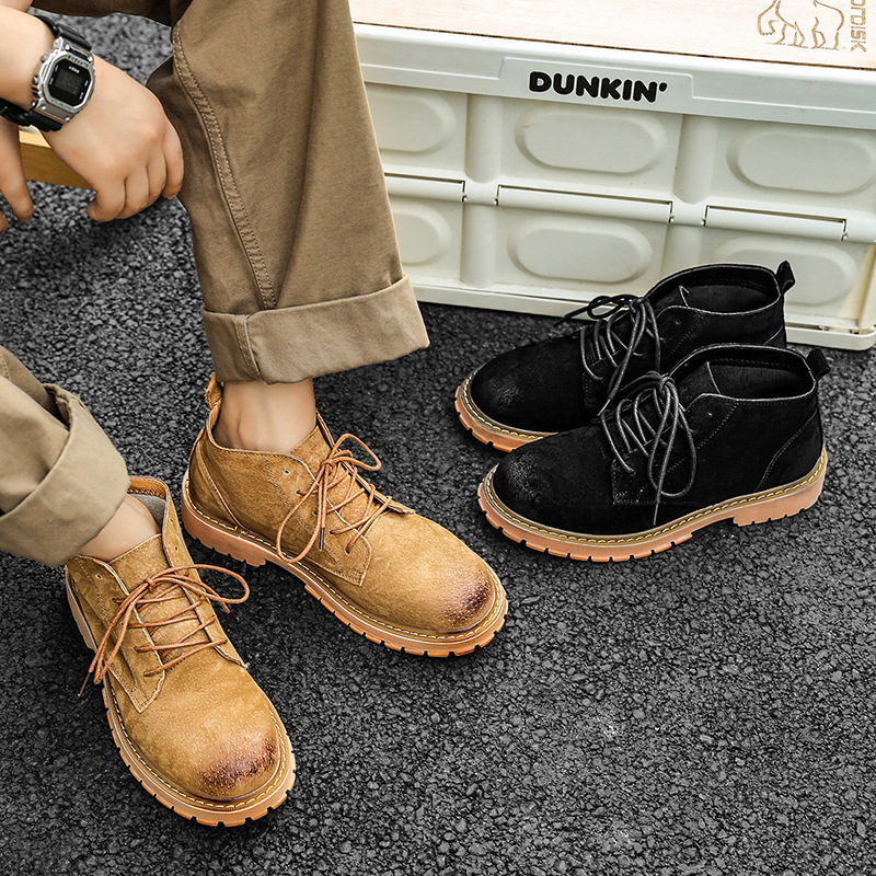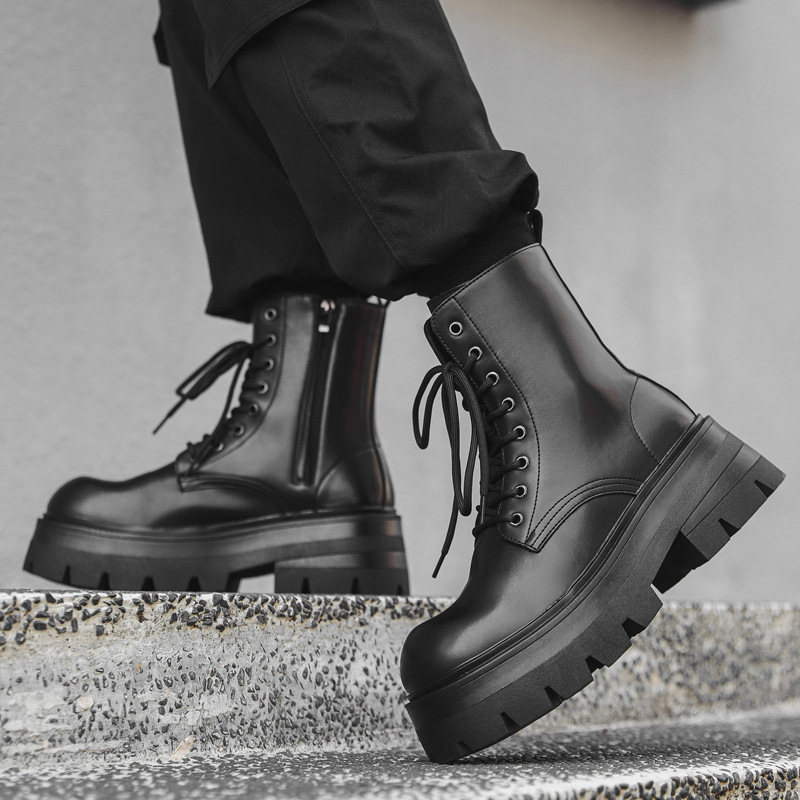 2025年秋新作 ラウンドトゥ ハイカット ミッドカット 厚底 ワークブーツ メンズ ミッドヒール トレンド マーティンブーツ 96110-T