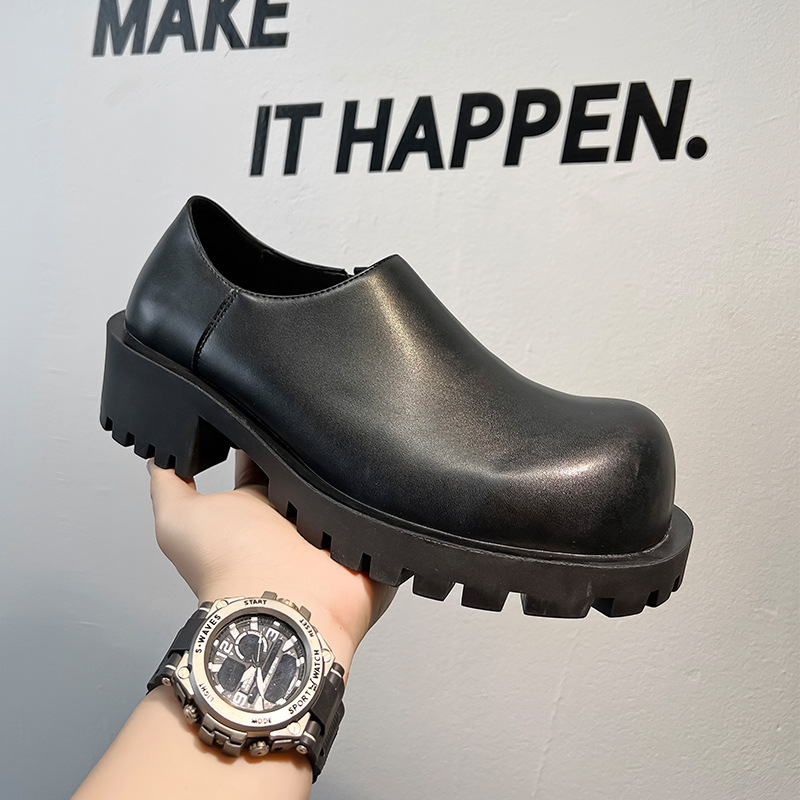 ミッキーミニ革靴メンズトレンディレザー2025春新作カジュアルラージレザーシューズ厚底ロートップレトロシングルシューズストラップ付き