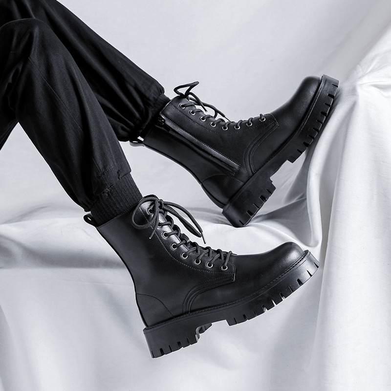 マーティンブーツ男型英倫風高帮厚底工装革ブーツ男士高筒機関車潮男靴96110-m