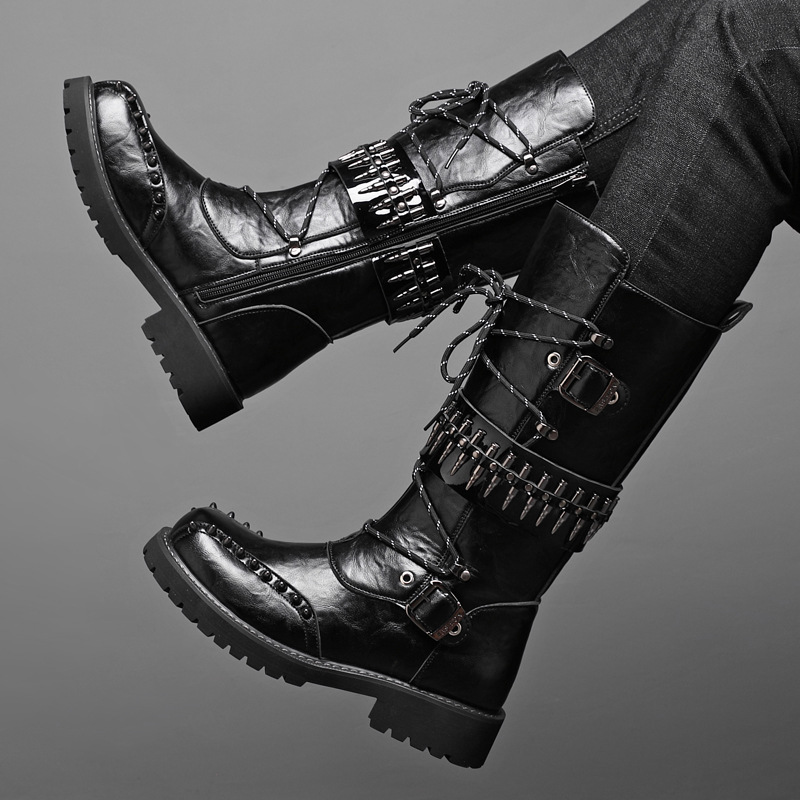 男性用ブーツ厚い底ロックパンク演出靴舞台パフォーマンスリベットマーティンブーツ対外貿易クロスボーダー8802