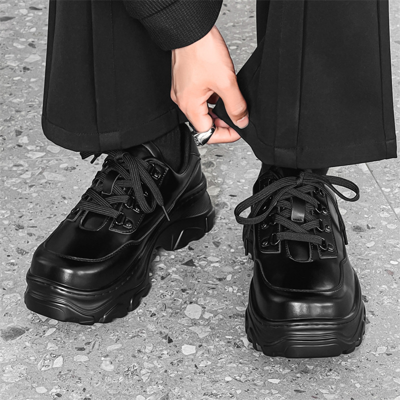 暗黒シリーズの厚い底の徳比靴の男性のカジュアルシューズの英倫港風の靴は高くなります。
