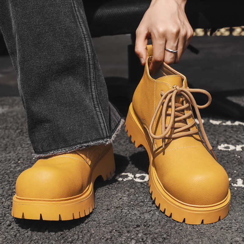 2024春の起爆工装靴男性カジュアル反絨皮の厚い底が高くなっています。