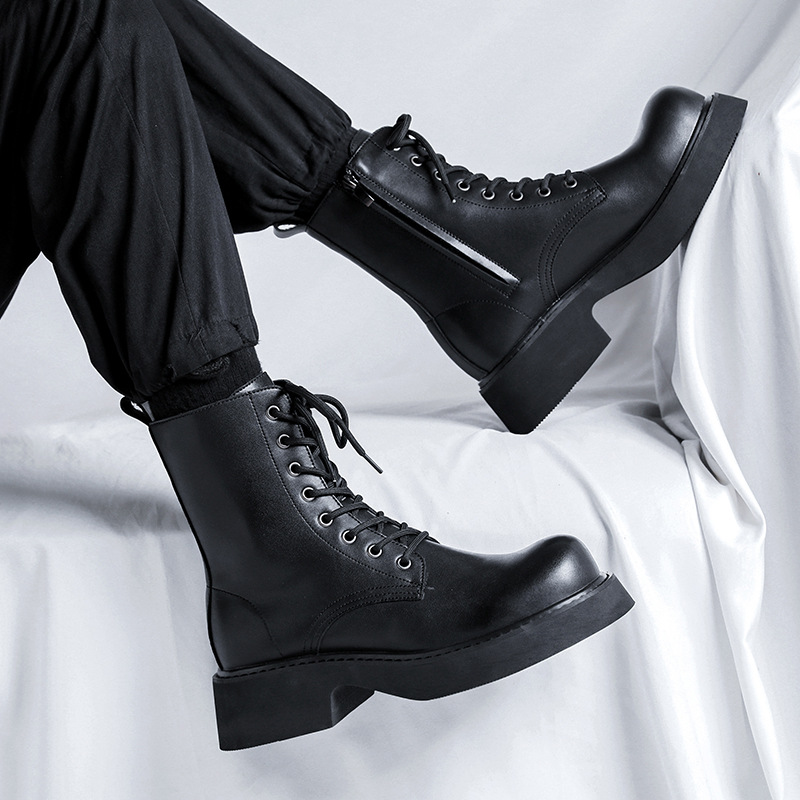 2023秋の新型マーティンブーツ英倫風高助男靴カジュアル中助工装黒潮ショートブーツ7016-r