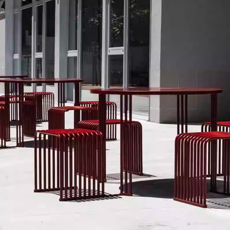 屋外テーブルと椅子の組み合わせ庭園の露店コーヒーミルクティー店レストランドーパミン円卓レジャーカラーネットレッド